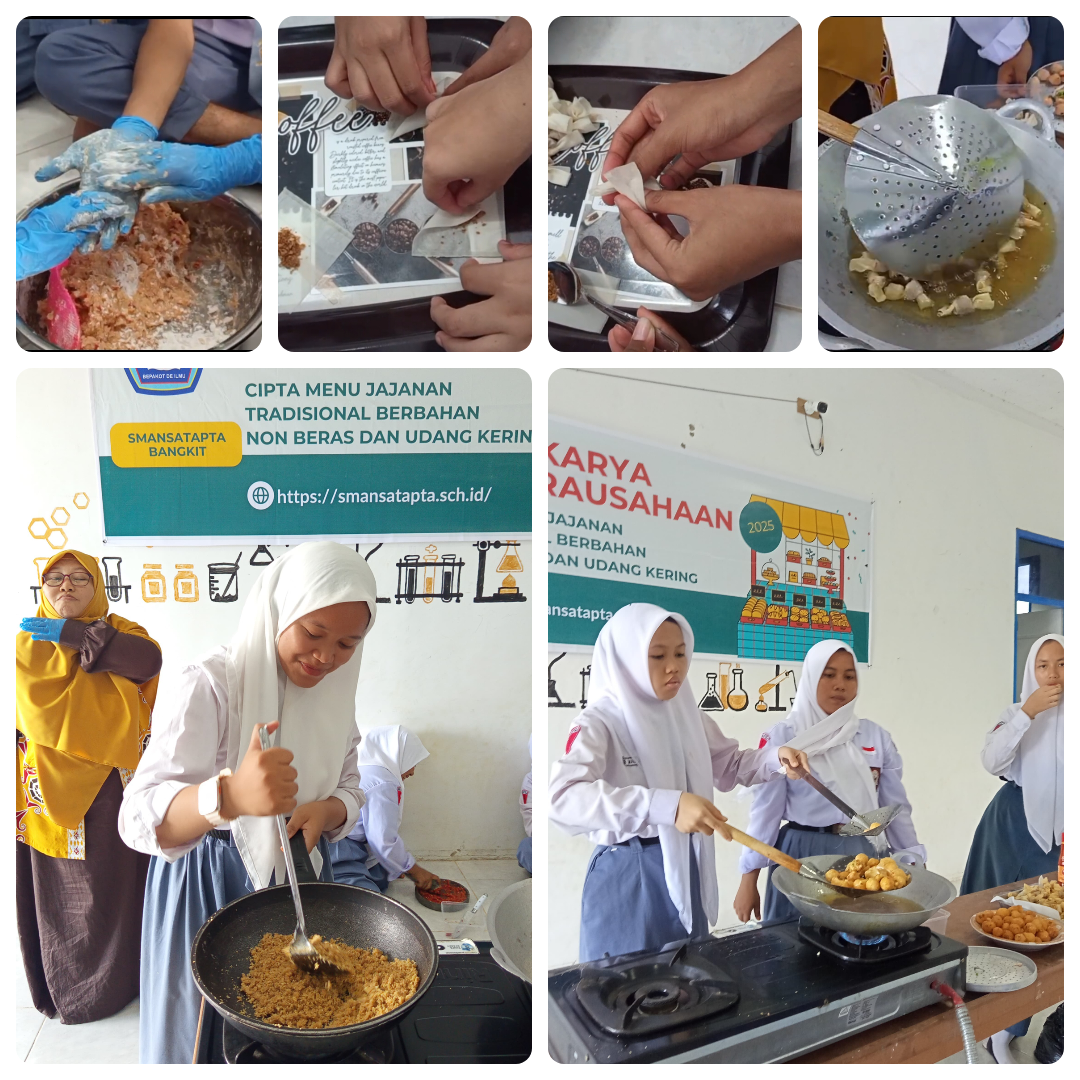 Dalam kegiatan Lokakarya Kewirausahaan kali ini mengambil judul : “Cipta Menu Jajanan Tradisional Berbahan Dasar Non Beras dan Udang Kering”. Pemilihan judul tersebut terinspirasi dari kondisi bentang alam SMAN 1 Tanjung Palas Tengah yang berlokasi di Desa Salimbatu, Kecamatan Tanjung Palas Tengah, terletak di pesisir Sungai Kayan. Desa Salimbatu memiliki sumber daya alam yang melimpah, seperti ikan sungai yang segar, udang sungai yang luar biasa selain tekstur tanah yang subur untuk tanaman, seperti ubi, jagung, keladi dan sayuran. Di sisi lain dari Desa Salimbatu memiliki keunikan budaya lokal dari suku Tidung yang terus dilestarikan serta keramahan masyarakatannya. Setiap ada keramaian budaya pasti di sisi lain ada sajian jajanan/makanan tradisional yang menggunakan bahan-bahan lokal yang sudah ada di desa tersebut. Dari Kearifan Lokal tersebut, maka SMAN 1 Tanjung Palas Tengah ingin memberikan kontribusi yang positif, yaitu dengan menyiapkan peserta didiknya yang notabene adalah generasi-generasi muda Desa Salimbatu untuk dibekali tentang ilmu kewirausahaan melalui kegiataan Lokakarya Kewirausahaan.