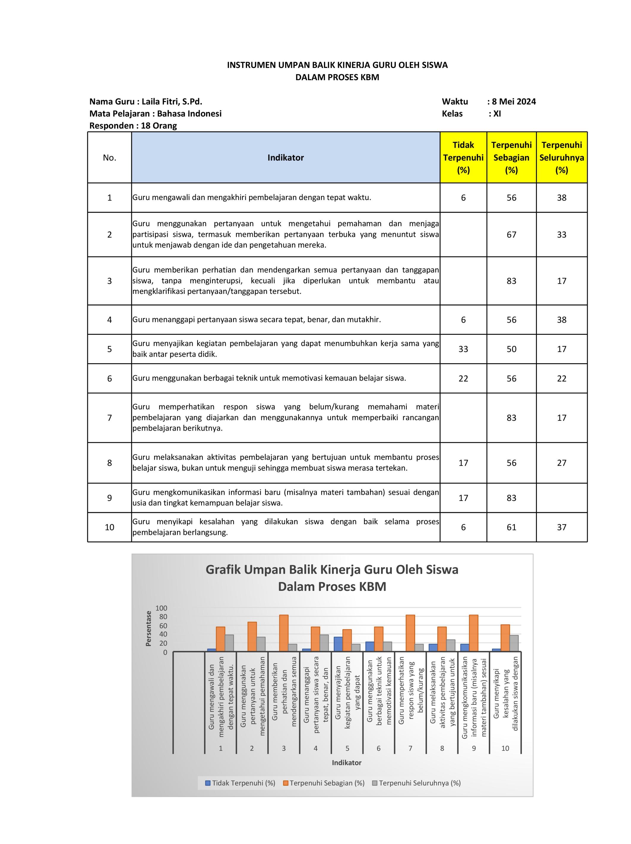 - Evaluasi Berkelanjutan: Guru menggunakan hasil umpan balik dari siswa tentang kinerja guru di kelas dan hasil refleksi diri guru yang telah mendapatkan respon dari teman sejawat dalam kegiatan komunitas belajar untuk menilai efektivitas proses pembelajaran di kelas.