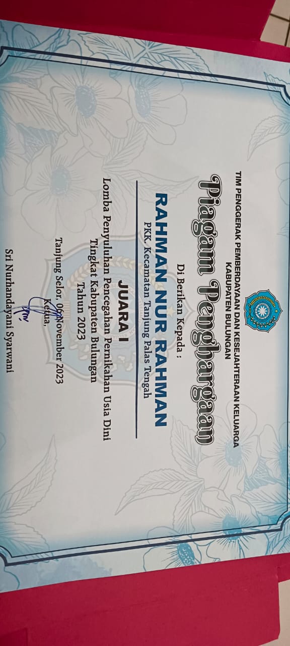 JUARA I, A,N, RAHMAN NUR RAHMAN, LOMBA PENYULUHAN PENCEGAHAN PERNIKAHAN USIA DINI