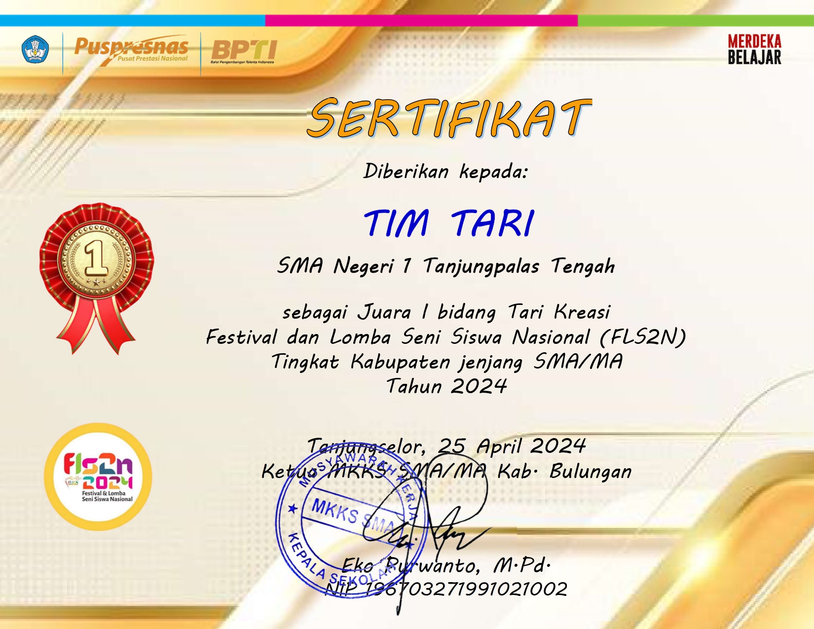 KEGIATAN FLS2N TAHUN 2024 TINGKAT KABUPATENJUARA I TARI KREASI.
